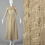 XXS 1970s Mollie Parnis Boutique Metallic Dress Long Sleeve Ivory Gold Pockets