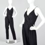 XXS 1980s Sexy Black Wrap Front V-Neck Jumpsuit