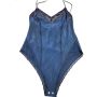 Y2K Ritratti Italy Luxury Silk Navy Teddy with Lace Trim, Italian Lingerie, S